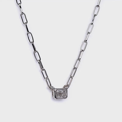 Bezel Set Emerald Lab Diamond Necklace, Sterling Silver