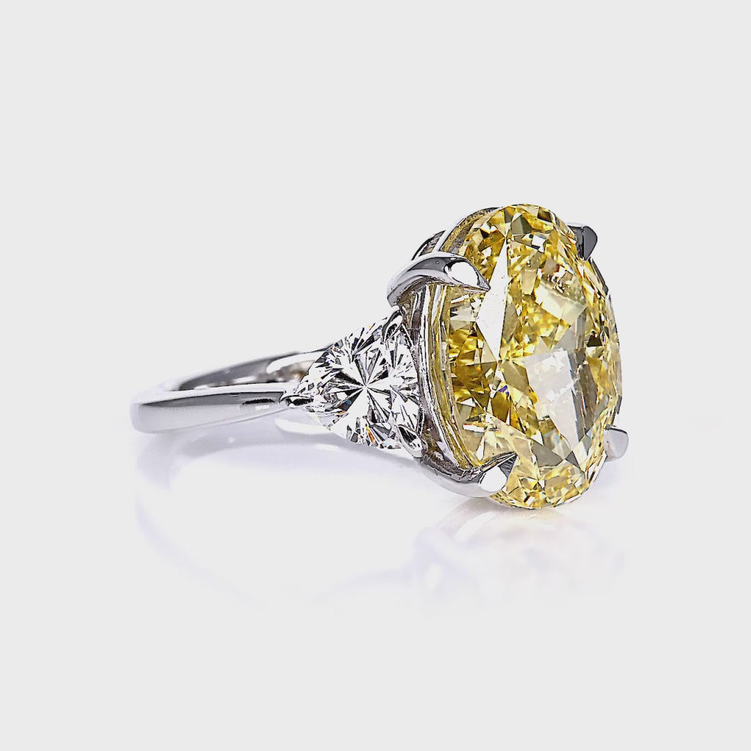 Center Diamond: 6.57CT Fancy Intense Yellow Oval VS1