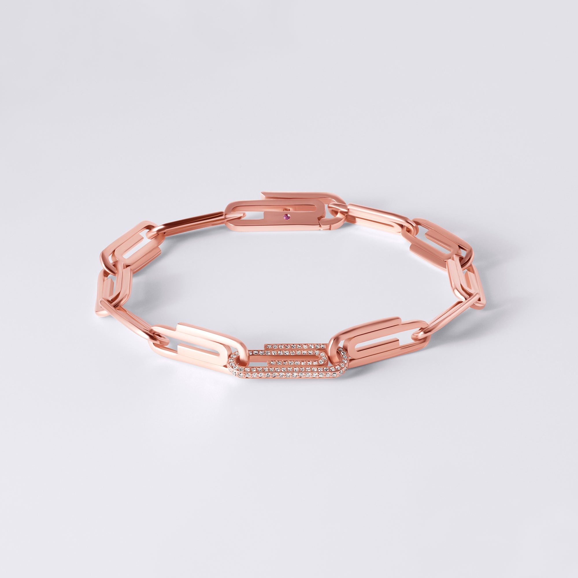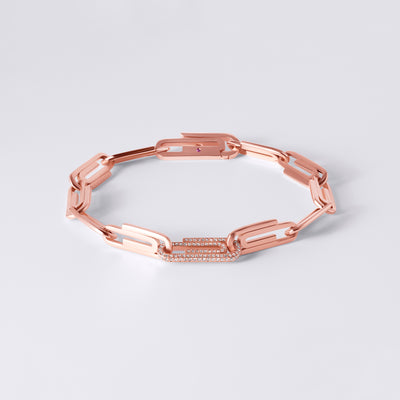 Paperclip Bracelet with Single Pave Link, Rose Gold