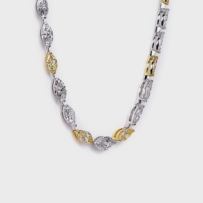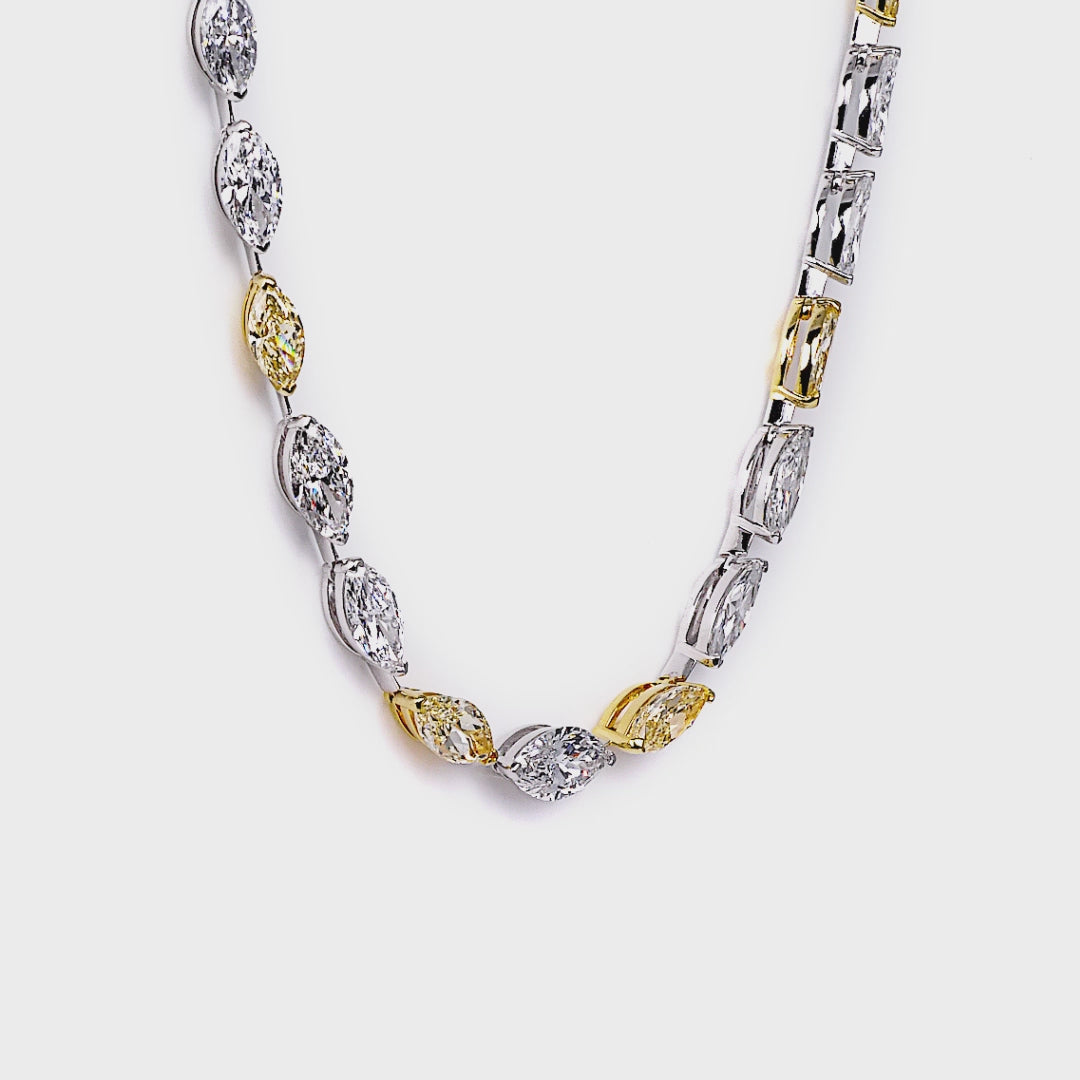 Fancy Yellow and White Alternating East/West Marquise Necklace, White and Yellow Gold