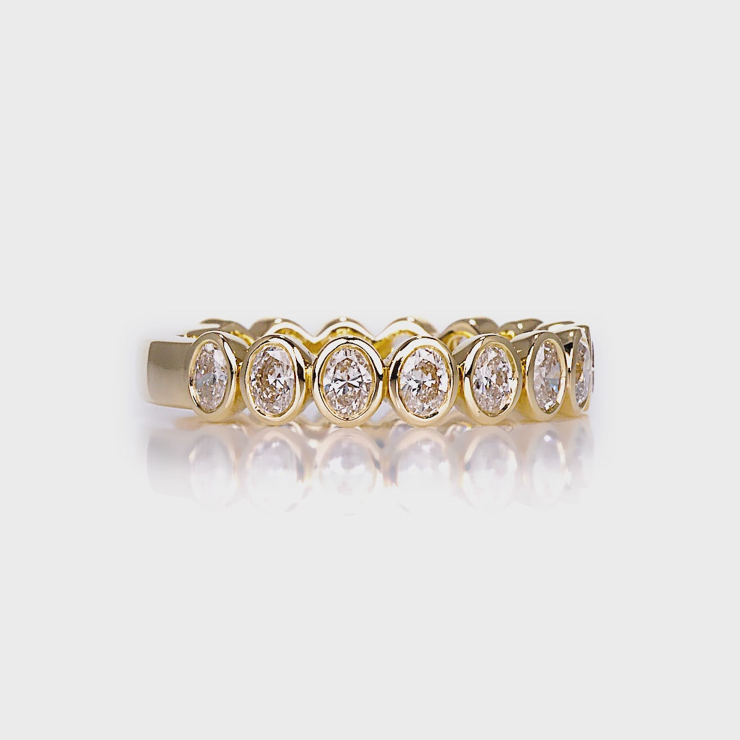 Oval Shaped Bezel Set 3/4 Eternity Band, Yellow Gold