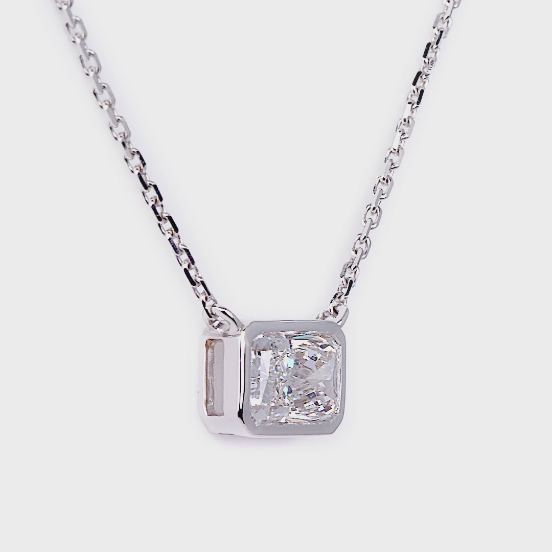 Radiant Cut Bezel Set Pendant Necklace (1CTW), White Gold