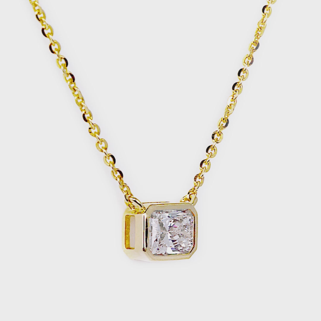 Radiant Cut Bezel Set Pendant Necklace (1CTW), Yellow Gold