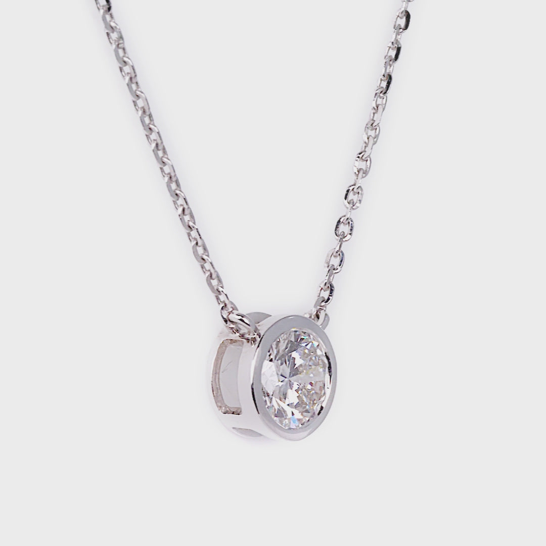 Round Brilliant Bezel Set Pendant Necklace (1CTW), White Gold