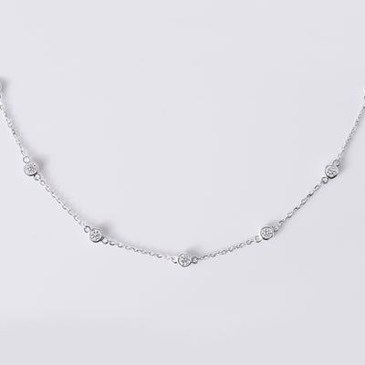 Round Brilliant Cut Bezel Set Diamond Station Necklace (2CTW), White Gold