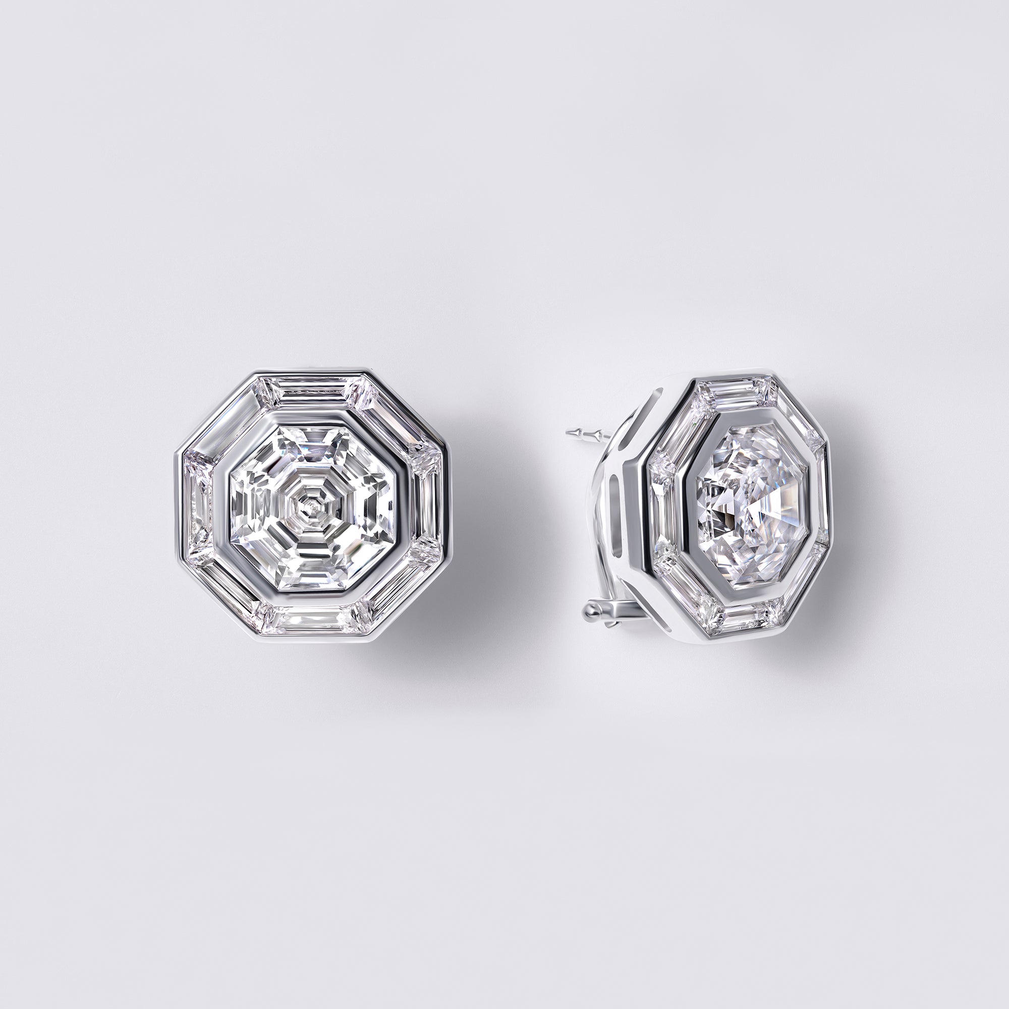 Step-cut Octagon With Baguette Halo Studs (13.86CTW), White Gold