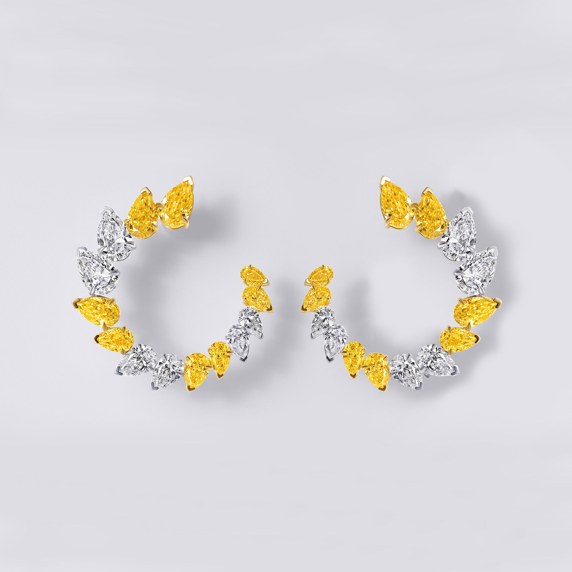 Diamonds: 12 x Pear E VS+ and 16 x Pear Fancy Intense Yellow Pears VS+