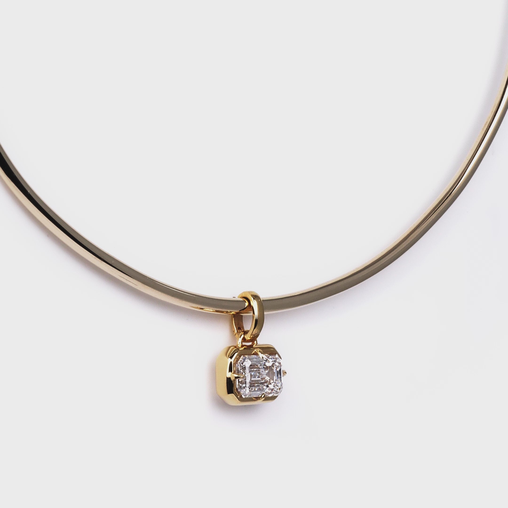 Details: 15" 3.13mm Yellow Gold Collar with Removable Emerald Bezel Charm