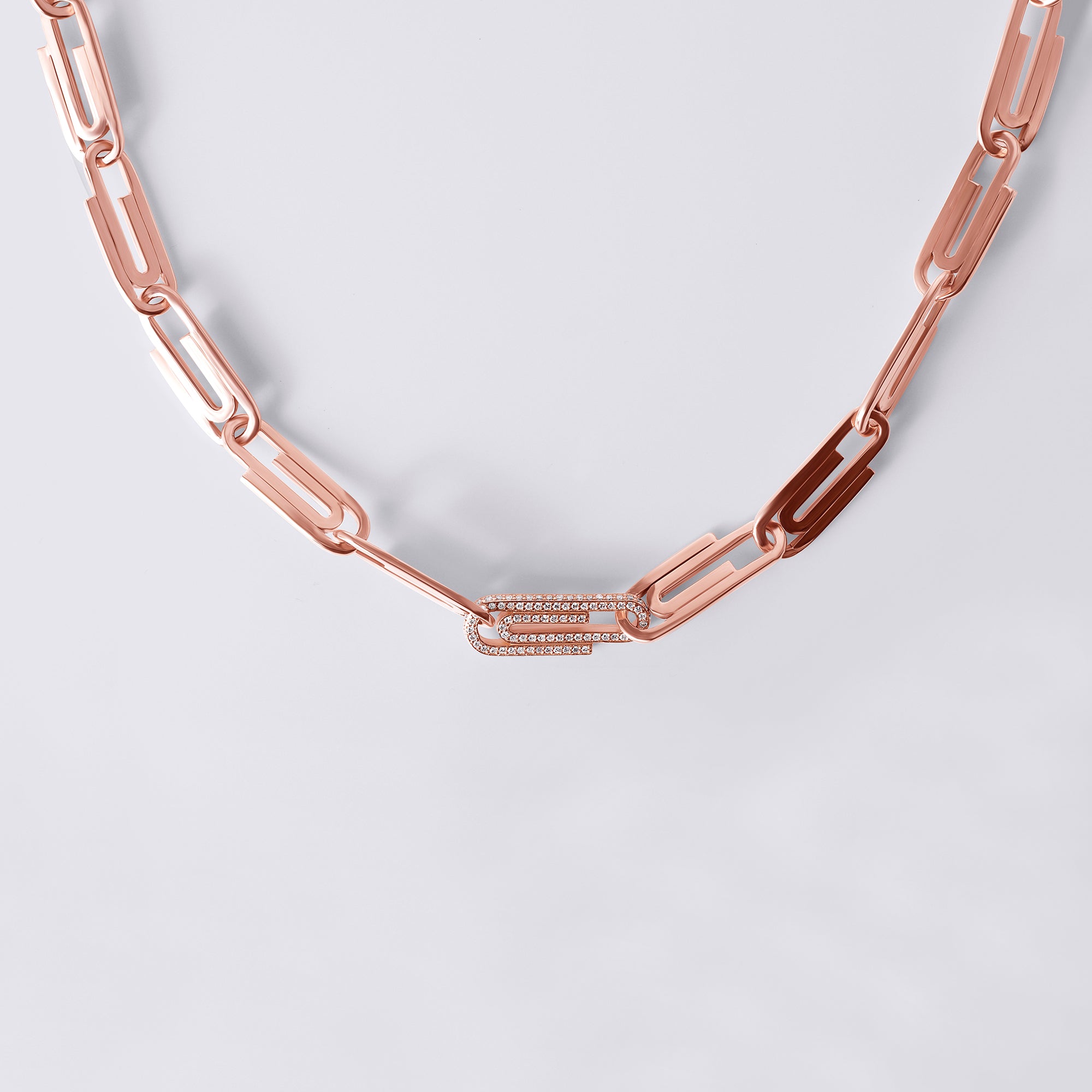 Paperclip Necklace with Single Pave Link, Rose Gold
