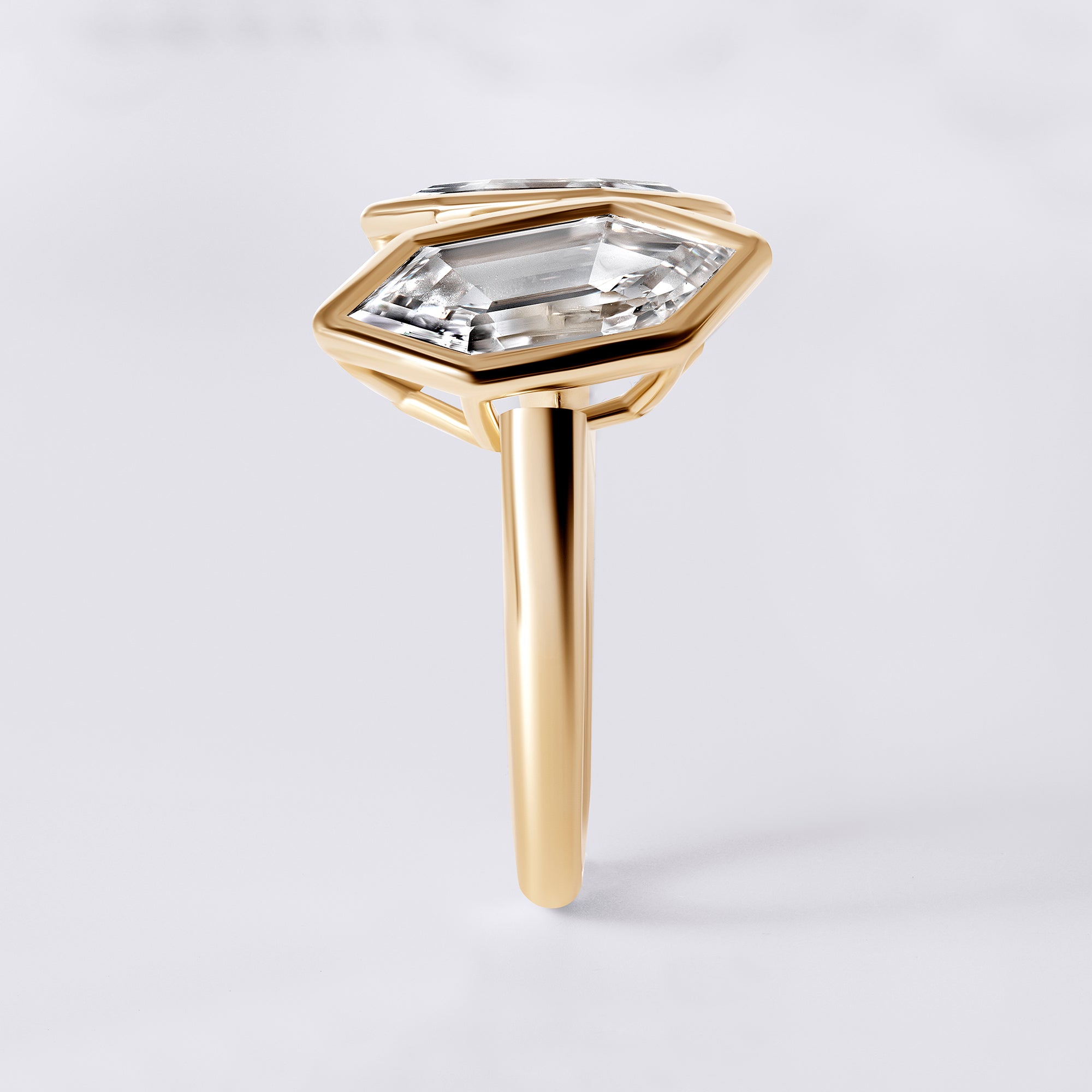 Bespoke Toi et Moi (4.26CTW) Soleil Hexagon and Oval Ring, Yellow Gold