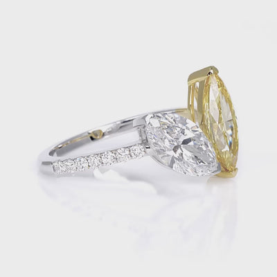 White and Yellow Marquise Toi et Moi Ring (2 1/6CTW ), White and Yellow Gold