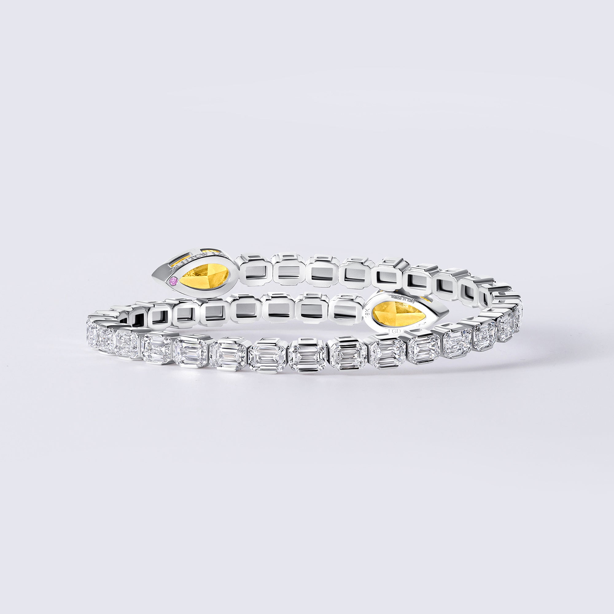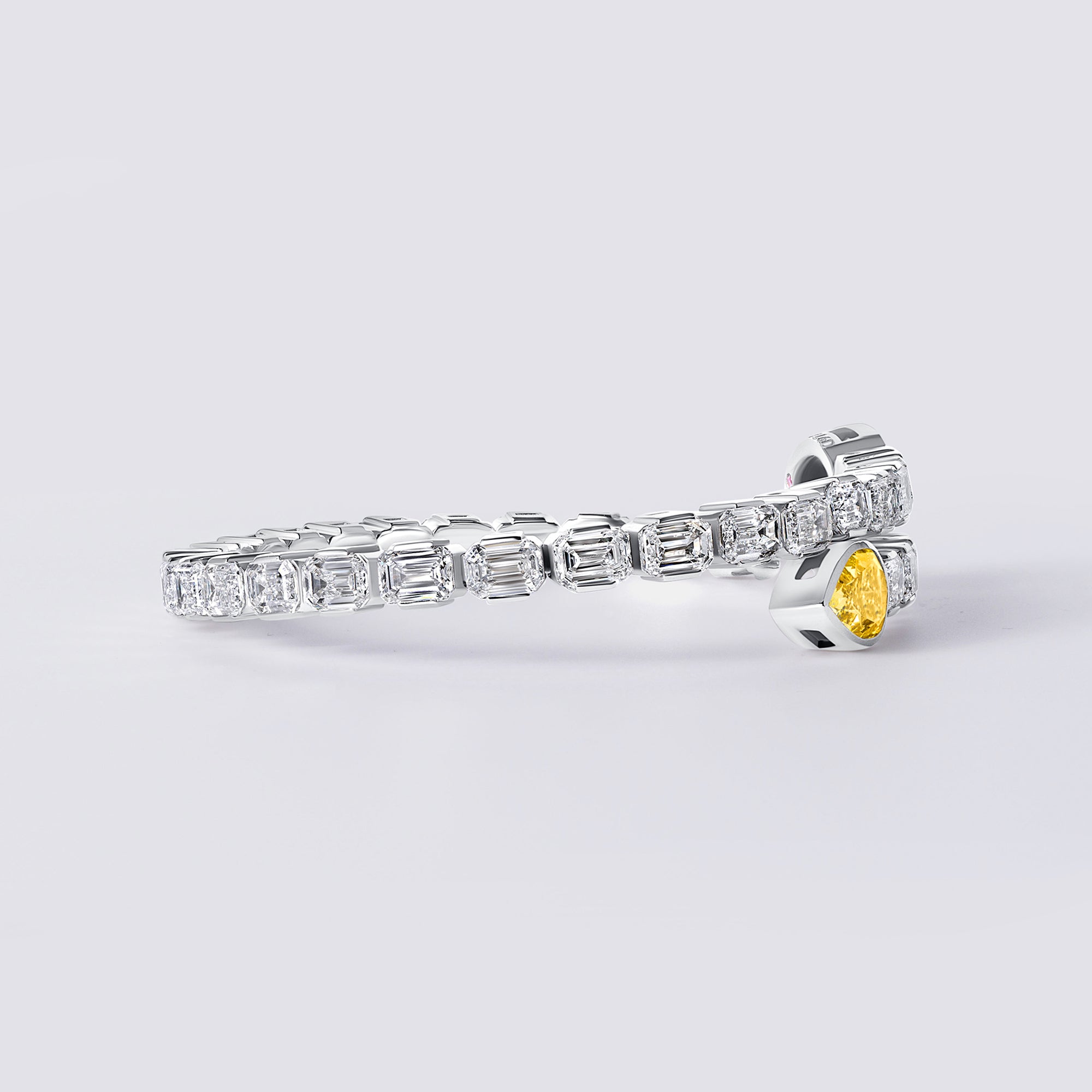 Flexible Emerald and Yellow Pear Cuff Bracelet, 18K White Gold