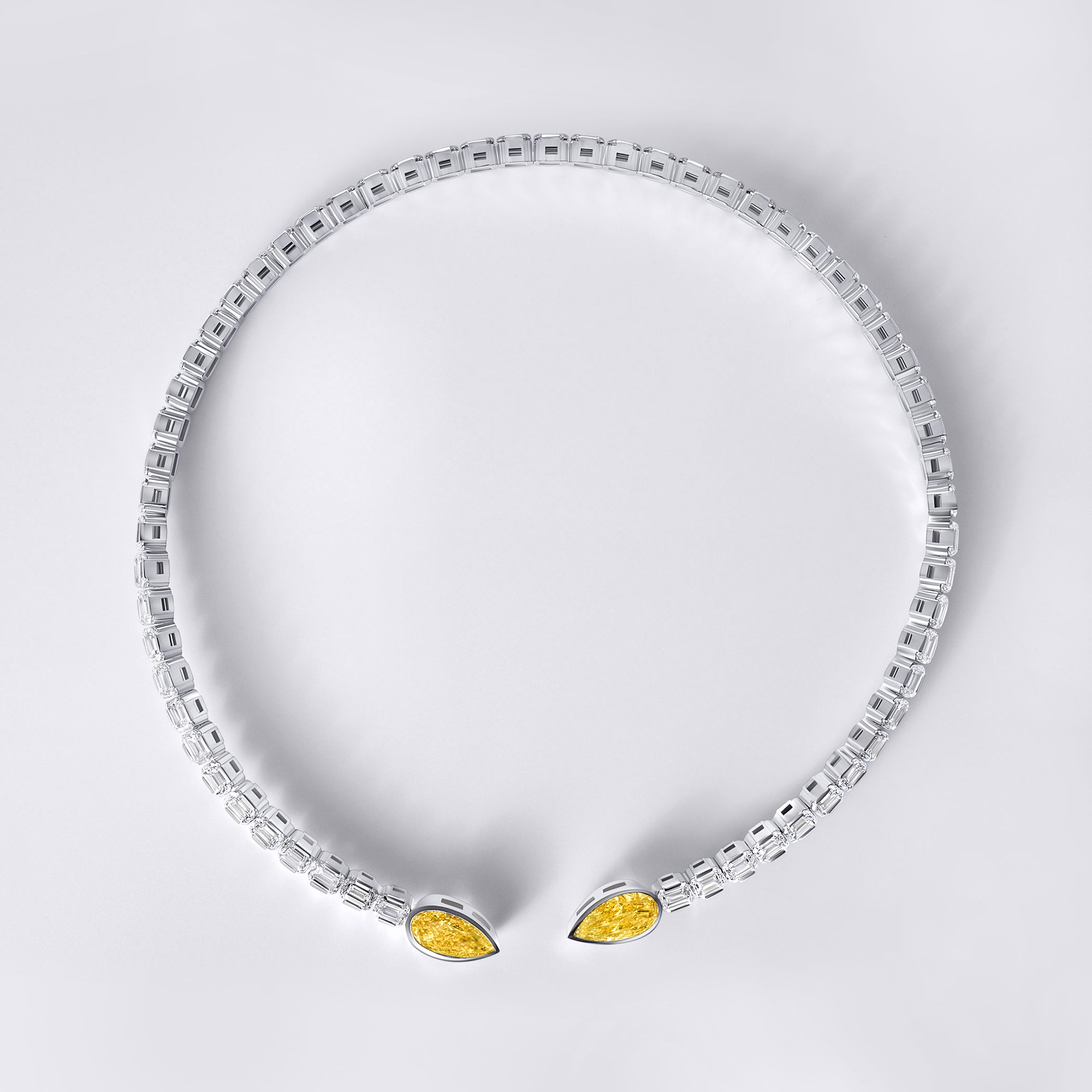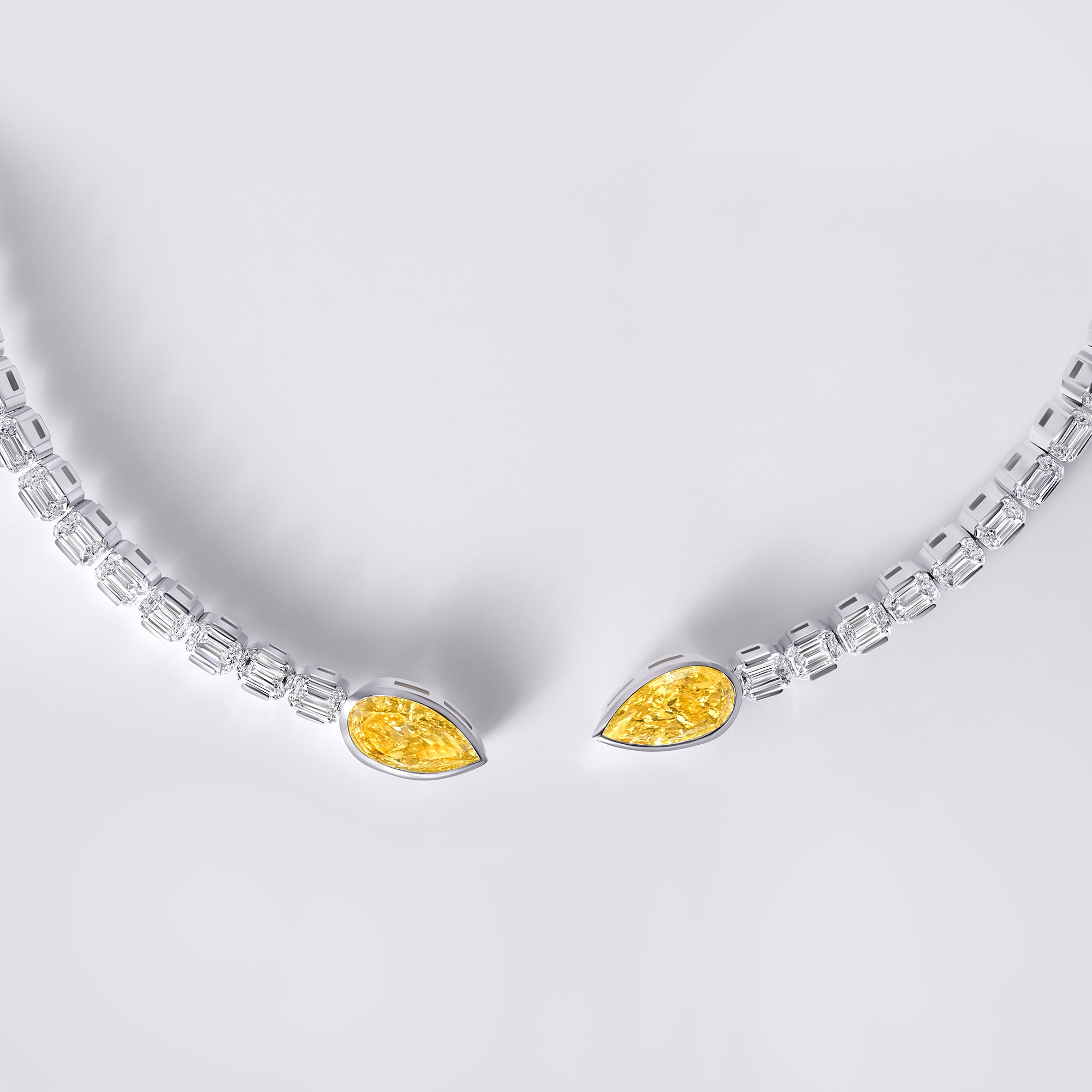 Emerald and Yellow Pear Collar Necklace, 18K White Gold