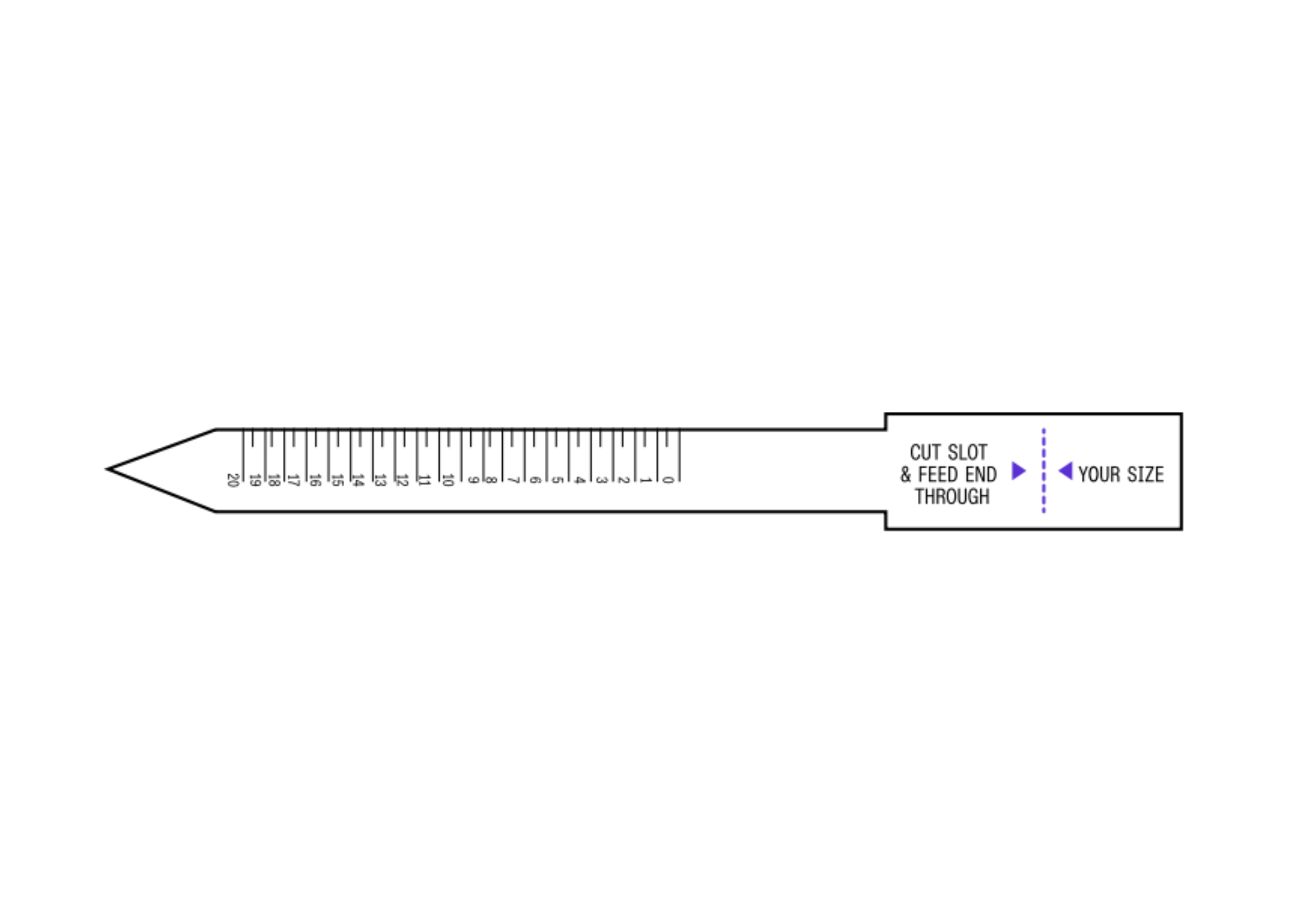 - Wrap the paper ring sizer snuggly around the base of the intended finger so that the numbers are visible and insert the pointed end through the slit you made in the sizer.