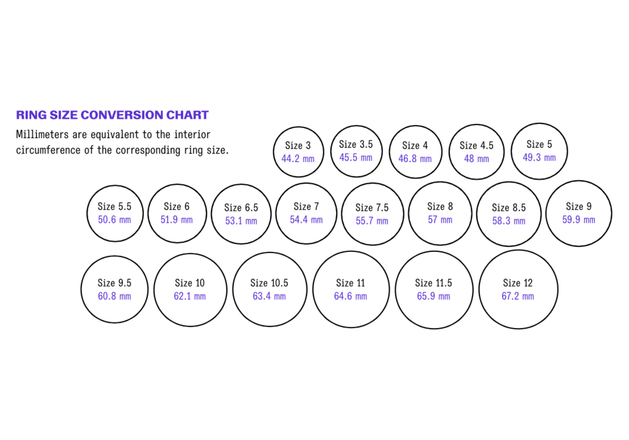 Use the Ring Size Conversion Chart to match the millimeter length to the corresponding ring size.