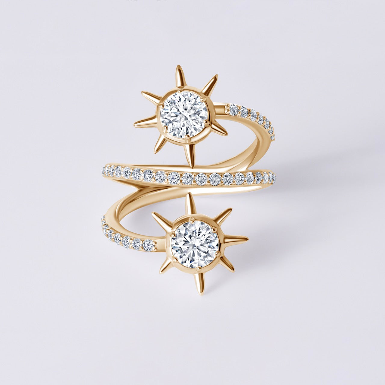 Solaris Round Diamond Pave Sun Motif Wrap Ring